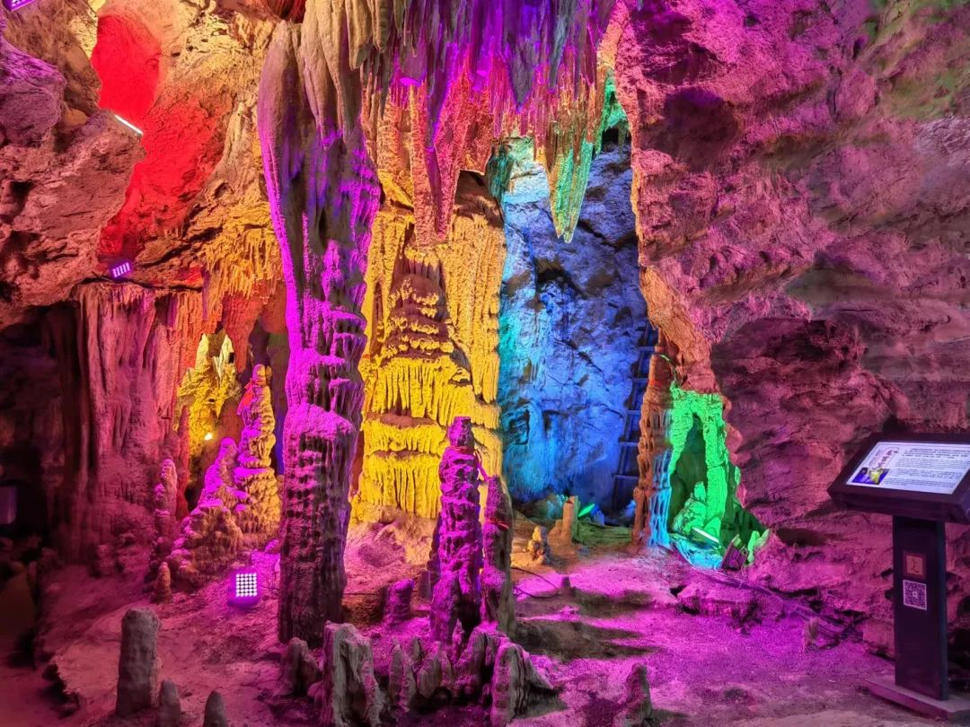 早餐后游览【老龙宫】天然溶洞奇观,洞口宽29米、高30米,洞内钟乳石形态万千,地下暗河清澈见底,恒温约12℃,夏季清凉宜人。可体验溶洞滑索,俯瞰暗河景观。